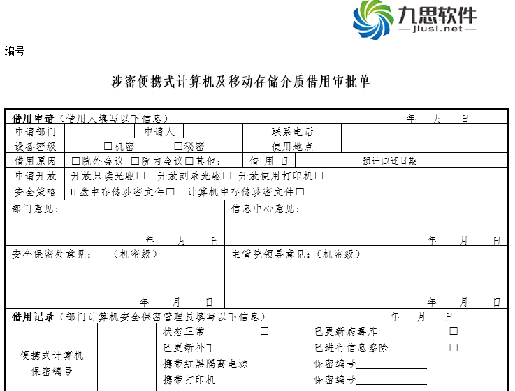 狀態正常 □ 已更新病毒庫 □ 已更新補丁 □ 已進行信息擦除 □ 攜帶紅黑隔離電源 □ 保密編號 攜帶打印機 □ 保密編號 攜帶移動光驅 □ 保密編號 |