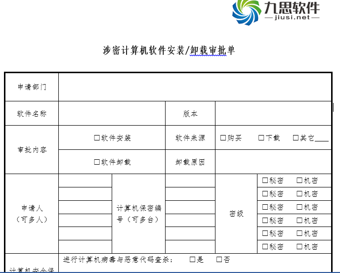 2、安裝未在部門軟件白名單列表中的軟件時填寫此表